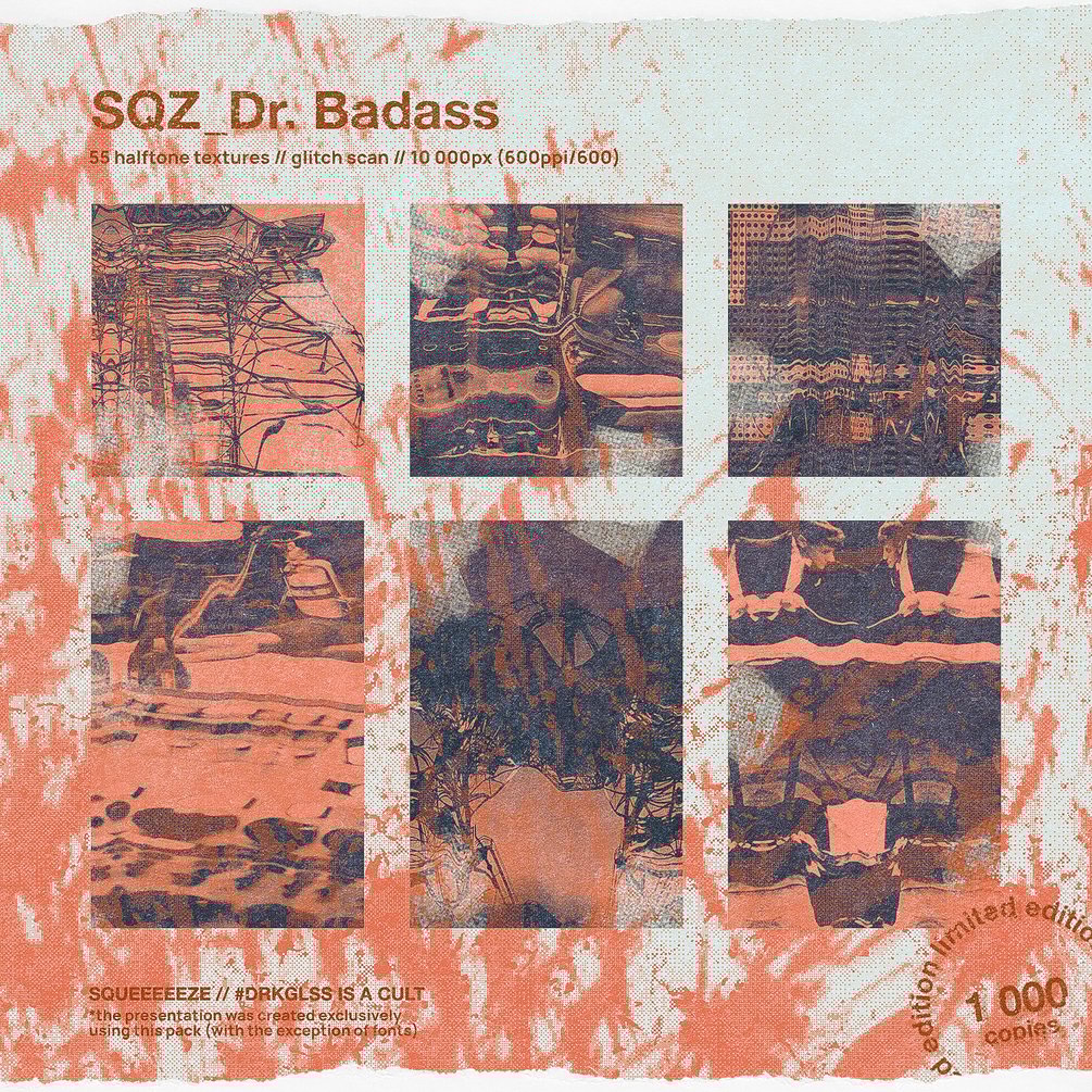 Texture is represented in the canonical halftone in high resolution. Including a small collection of glitch scans of various industrial, scientific and technical objects from publications of the 50-60s. All brushes and maps are handmade textures with a large percentage of experimentation.