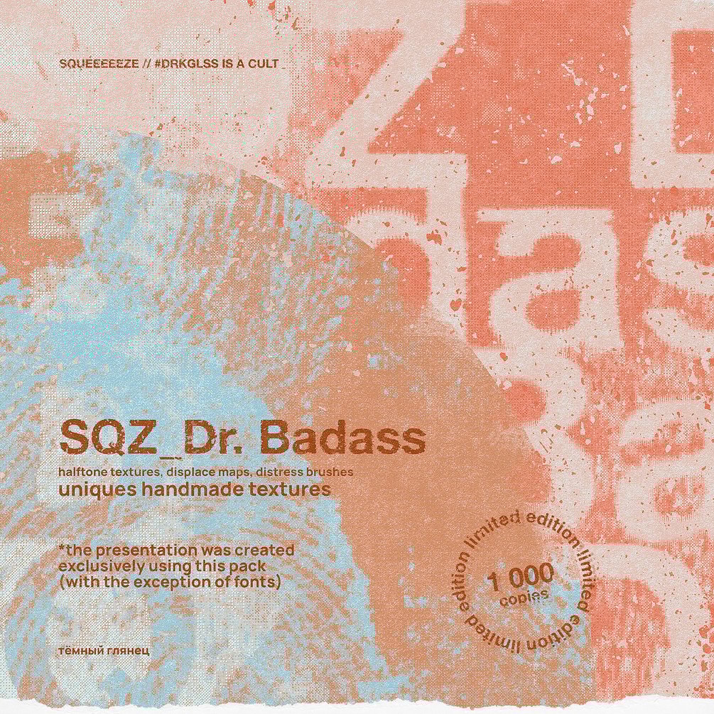Texture is represented in the canonical halftone in high resolution. Including a small collection of glitch scans of various industrial, scientific and technical objects from publications of the 50-60s. All brushes and maps are handmade textures with a large percentage of experimentation.